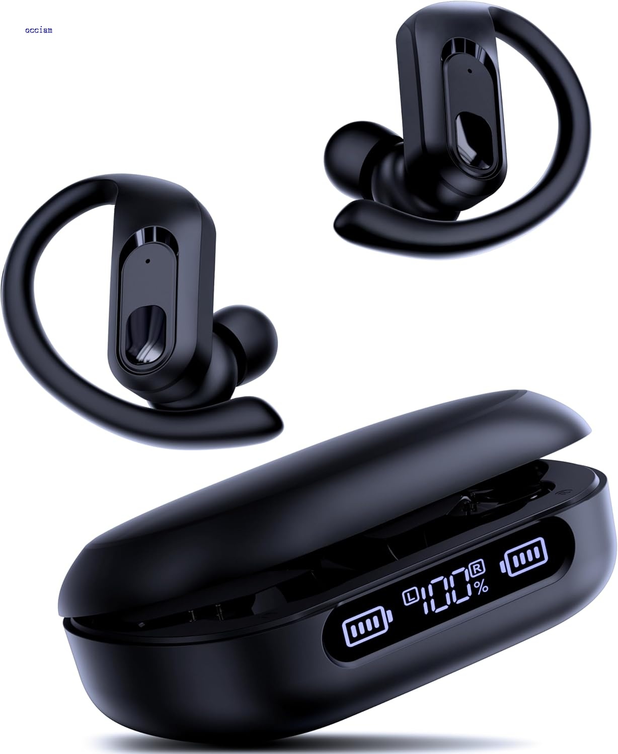 occiam Active Noise Cancelling Wireless Earbuds Bluetooth Headphones Ear Buds 96Hrs Playback Clear Call Waterproof Earphones with Ear Hook Microphones for Sport Running (Black AI Buds Pro)